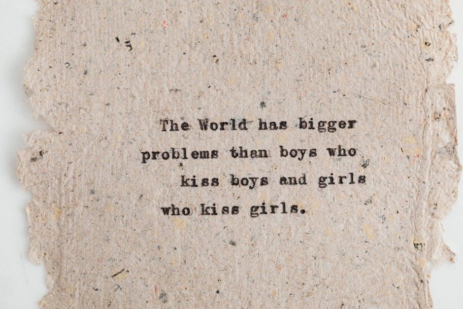 Students learn to recognize phrases like “fewer than‚” “smaller than‚” or “is less than” as cues to use the < symbol. Mastering this interpretation is crucial for accurate inequality representation. Answer keys included in the PDFs verify correct symbol usage and solution accuracy.